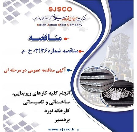معدن ۲۴:شرکت جهان فولاد سیرجان در نظر دارد نسبت به انجام کلیه کارهای زیربنایی، ساختمانی و تاسیساتی براساس فهرست بهای ابنیه، تاسیسات برقی و تاسیسات مکانیکی کارخانه نورد بردسیر از طریق برگزاری مناقصه عمومی دو مرحله ای اقدام نماید؛ لذا از تمامی پیمانکاران معتبر که دارای حداقل ۲ (دو) سال سابقه کار مشابه در سطح استان کرمان و همچنین دارای توانایی مناسب، سوابق و تجارب مورد قبول می باشند، دعوت به عمل می آید اسناد مناقصه را از طریق مراجعه به آدرس اینترنتی WWW.SJSCO.IR دریافت نمایند.