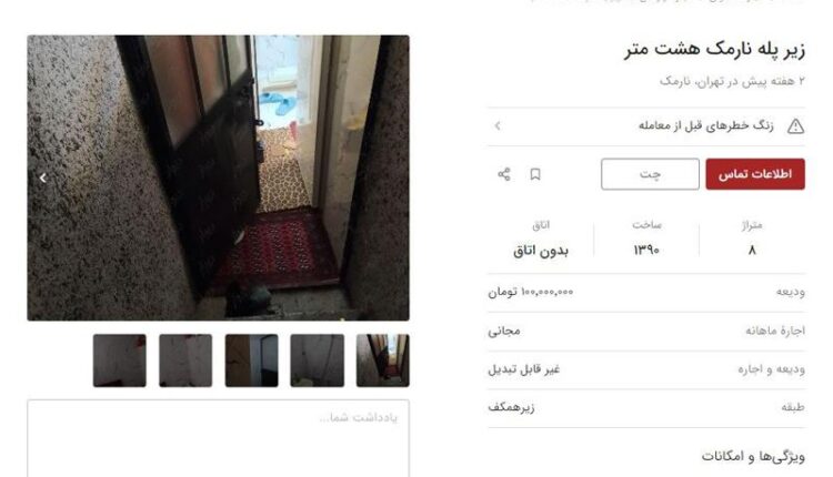در محله نارمک، برای یک زیرپله با ۸ مترمربع زیربنا ۱۰۰ میلیون تومان ودیعه تعیین شده است؛ در محله اتابک نیز، برای زیر زمین حدود ۱۸ متر که یک سوئیت بدون آشپزخانه است ودیعه ۳۰ میلیون تومانی و اجاره سه میلیون و ۵۰۰ هزار تومانی تعیین شده است.