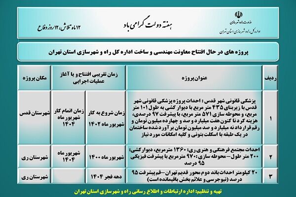 اطلاع نگاشت پروژه های در حال افتتاح معاونت مهندسی و ساخت اداره کل راه و شهرسازی استان تهران تاسیساتصنعت ساختمان خبرنگار محسن آقابابایی تاریخ انتشار شهریور ۱۵, ۱۴۰۴ 0 به گزارش تاسیسات نیوز به نقل از پایگاه خبری وزارت راه و شهرسازی اطلاع نگاشت پروژه های در حال افتتاح معاونت مهندسی و ساخت اداره کل راه و شهرسازی استان تهران منتشر شد. 0 اشتراک