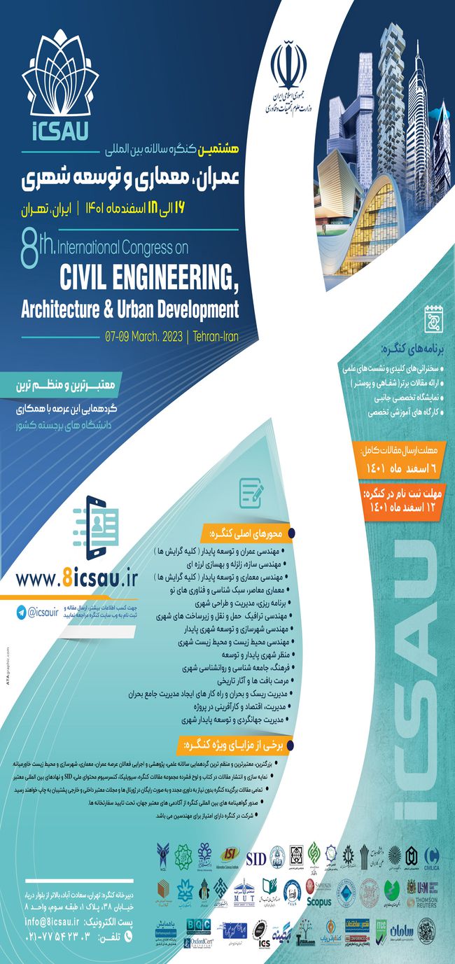 هشتمین دوره کنگره سالانه بین المللی عمران، معماری و توسعه شهری به عنوان بزرگترین، معتبرترین، منظم ترین و با سابقه ترین گردهمایی شناخته شده سالانه علمی، پژوهشی و اجرایی حوزه عمران، معماری، شهرسازی و محیط زیست خاورمیانه در کشور ایران در تاریخ ۱۶ الی ۱۸ اسفند ماه ۱۴۰۱ با مجوز رسمی برگزاری از وزارت علوم، تحقیقات و فناوری به شماره ۷۲۶۴۰۳۸ و با شرکت بیش از ۳۵۰۰ نفراز فعالین این عرصه شامل دانشگاهیان، صاحب نظران، سیاستگزاران و مدیران، دانشجویان ، سازمان های ذی ربط و علاقه مند، مهندسین مشاور، پیمانکاران و متخصصان از کشورهای مختلف جهان با همکاری دانشگاه ساپینزا رم، دانشگاه شیراز، دانشگاه علم و صنعت ایران، دانشگاه مراغه، دانشگاه هنر اسلامی تبریز، دانشگاه کوثر، انجمن مهندسی رودخانه ایران و سایر دانشگاه های برجسته ایران و ایتالیا در شهر تهران برگزار میگردد. این کنگره در نظر دارد با معرفی توان علمی و کاربردی برای ارتقای سطح کیفی معماری، سازه و توسعه های شهری و همچنین بررسی نیازمندی و ضرورتهای آموزش موارد فوق گام برداشته و با شناسایی نگرشها، تجربیات نوین و تحلیل ابعاد نظری و کاربردی توسعه شهری، به تحلیل ،آموزش و پژوهش آن بپردازد. برگزاری این کنگره همه ساله با شعار “توسعه شهری راهی به سوی توسعه آینده” فرصتی برای گردهمایی صاحبنظران،متخصصان واندیشمندان درحوزه معماری، سازه وتوسعه شهری بوده است.