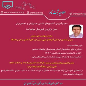 سمینارآموزشی آسانسورهای کششی، هیدرولیکی و پله های برقی تاسیساتنظام مهندسیگردهمایی خبرنگار صدیقه بهزادپور تاریخ انتشار بهمن ۲, ۱۴۰۱ 0 به گزارش تاسیسات نیوز، به نقل از سازمان نظام مهندسی ساختمان آذربایجانغربی سمینارآموزشی آسانسورهای کششی، هیدرولیکی و پله های برقی (محل برگزاری: شهرستان میاندوآب) برگزار خواهد شد. سمینار آسانسورسمینار آسانسورهای کششی 0 اشتراک