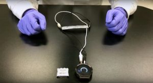 آنها باتری چاپ سهبعدی را در یک مچبند مجهز به لامپهای LED قرار دادند و باتری به مدت ۶۰ ثانیه روشن ماند.