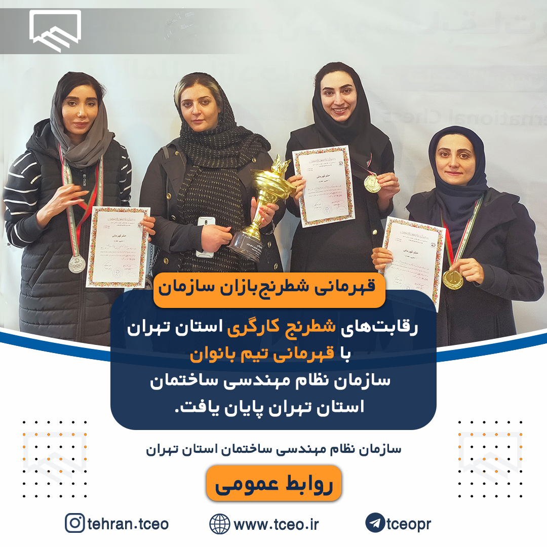 تیم شطرنج سازمان نظام مهندسی ساختمان استان تهران توانست قهرمان رقابتهای شطرنج کارگری استان تهران شود.