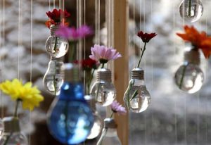 ۱- شما می توانید با استفاده از لامپ ها آن ها را به مکانی برای نگه داشتن شاخه گل در مراسم خاص مانند تولد، نامزدی و … تبدیل کنید.