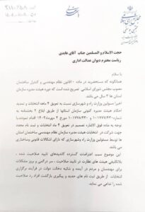 تاسیسات نیوز – صدیقه بهزادپور: مجتبی یوسفی عضو هیات رئیسه مجلس شورای اسلامی طی نامه ای به فرزانه صادق مالواجرد، وزیر راه و شهرسازی و عابدی رئیس دیوان عدالت اداری کشور خواستار رسیدگی نسبت به تعویق دهمین دوره انتخابات اعضای هیات مدیره نظام مهندسی ساختمان شد.