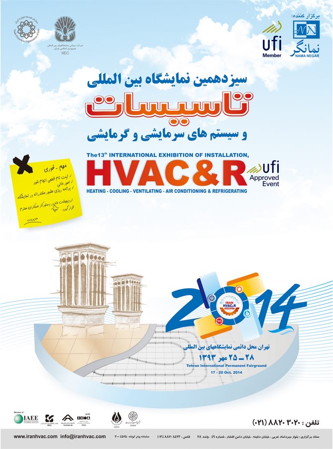 به گزارش تاسیسات نیوز، بیست و چهارمین نمایشگاه بین المللی تاسیسات و سیستم های سرمایشی و گرمایشی و تهویه مطبوع از ۱۲ تا ۱۵ مهرماه در محل نمایشگاه های بین المللی تهران برگزار خواهد شد. پوسترهای دوره های گذشته را باهم مرور کنیم.