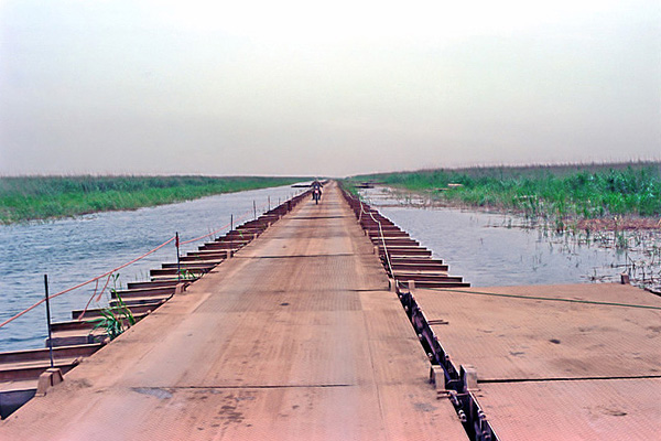 برای اینکه هنگام عبور خودروها این پل به مشکل نخورد و یونولیتها نشکنند، یک ورق آهنی عاجدار روی آن گذاشته شده بود. همچنین برای اینکه هنگام بالا و پایین شدن و تکان خوردن پل، ماشینها به آب نیفتند – که البته چند مورد هم این اتفاق افتاد و بعضی از خودروها و آمبولانسهایمان به آب افتادند- در ۲ طرف قطعات با لولا، باله نصب شده بود تا پل روی آب شناور باقی بماند.