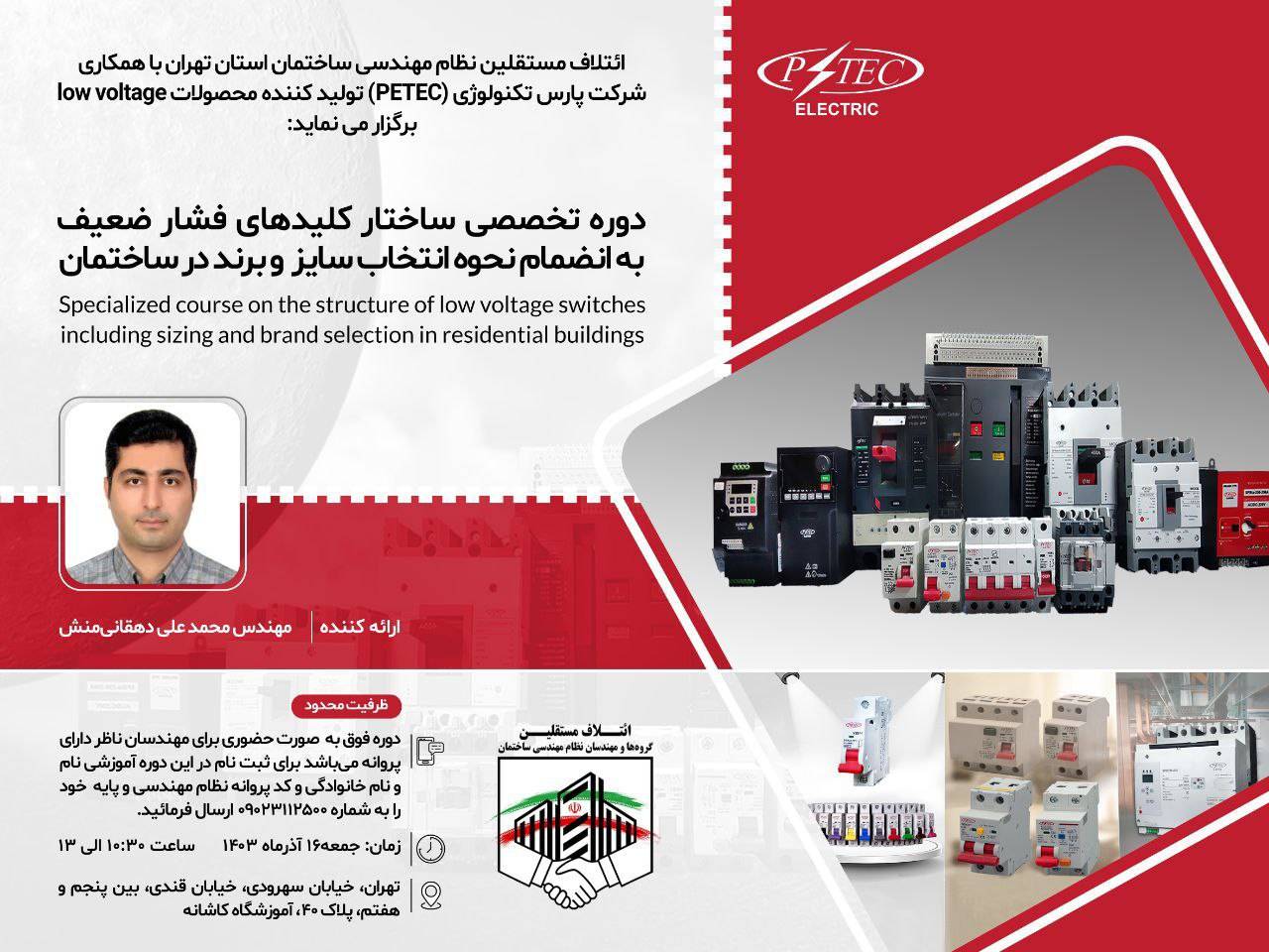 تاسیسات نیوز: کارگاه آموزشی “حضوری” رایگان با موضوع :ساختار کلیدهای فشار ضعیف به انضمام نحوه انتخاب سایز و برند در ساختمان برای ناظران رشته برق.