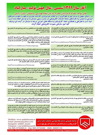 همچنین در این اطلاعیه تصریح شده است: امید است با همراهی و همکاری اعضا، کارفرمایان و دستگاه‌های اجرایی مرتبط با سازمان در آینده‌ای نزدیک کلیه امور سازمانی به صورت الکترونیکی انجام شود.در اطلاعیه سازمان نظام مهندسی ساختمان استان اردبیل به ۱۸ اقدام موثر برای تسهیل و تسریع امور و جلوگیری از مراجعات غیرضروری اشاره شده است.